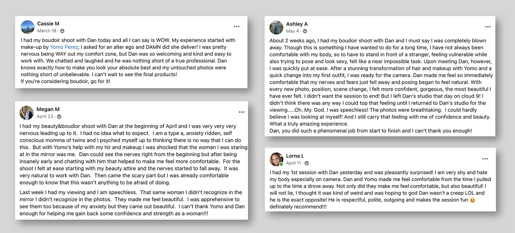 it's completely normal! We understand how you feel, and we're here to help. With our years of experience in posing and lighting, we know exactly how to guide you every step of the way, from your head to your fingertips! So take a deep breath, relax, and trust us to capture your best self. Our testimonials speak volumes about how comfortable and relaxed our clients feel during their sessions. Rest assured, you're in great hands!